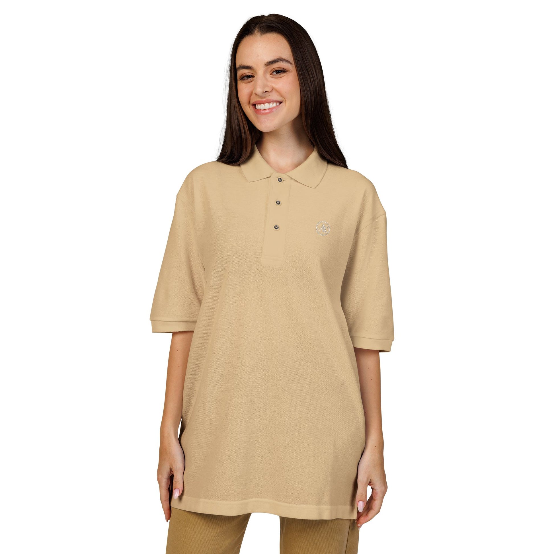 - 65% polyester / 35% cotton pique — lightweight and breathable